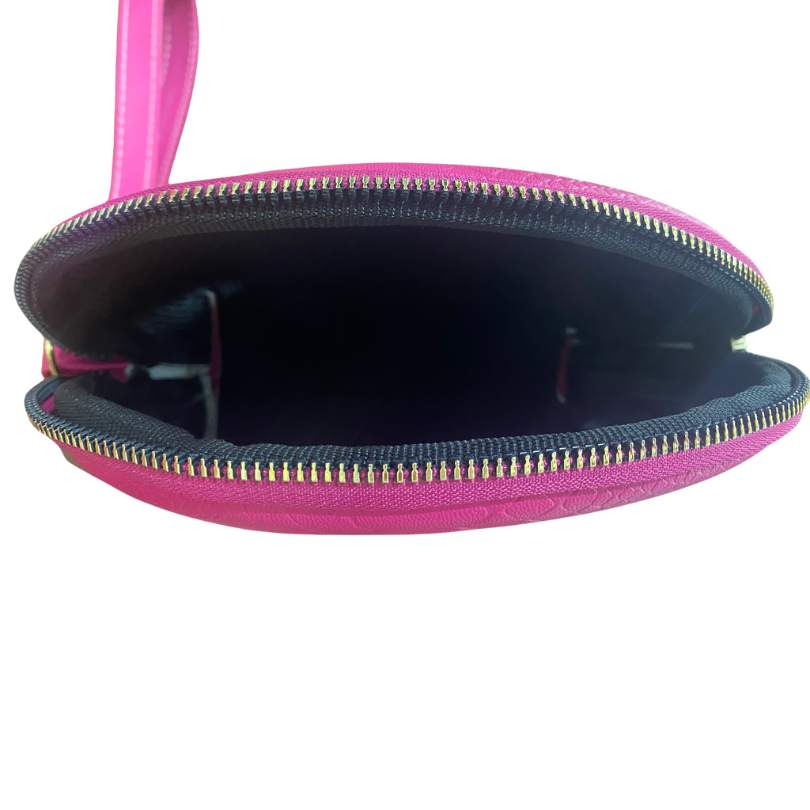 Se cierra con zipper metálico en forma de media luna. Su tamaño es ideal para guardar tu maquillaje diario.